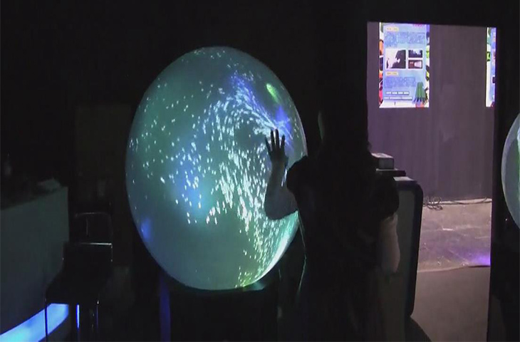 3、投影畫面投射到透明的投影幕,看起來就像是一個(gè)真實(shí)的球體在運(yùn)動(dòng)。
